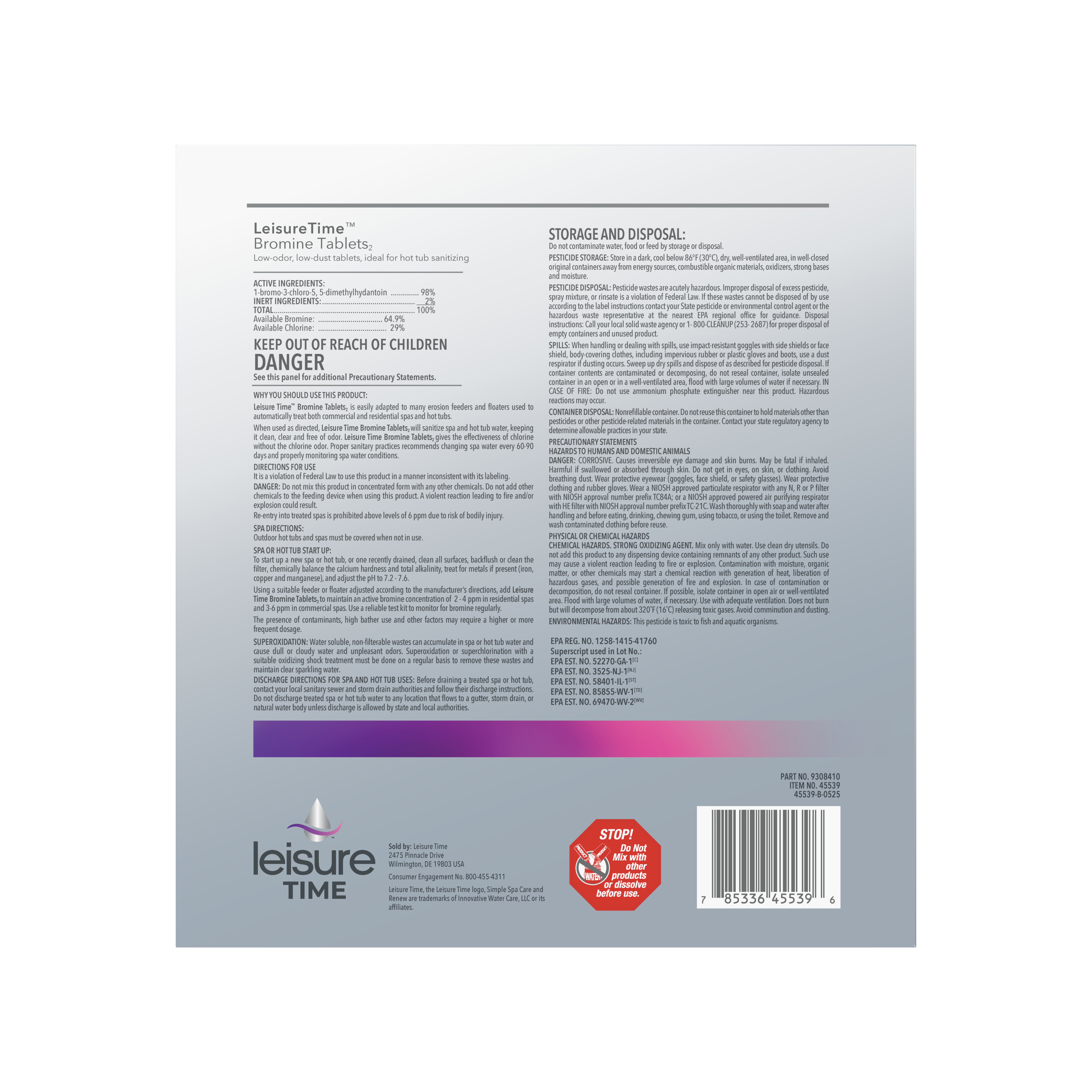 Bromine Tablets …………………………………….12 oz.
