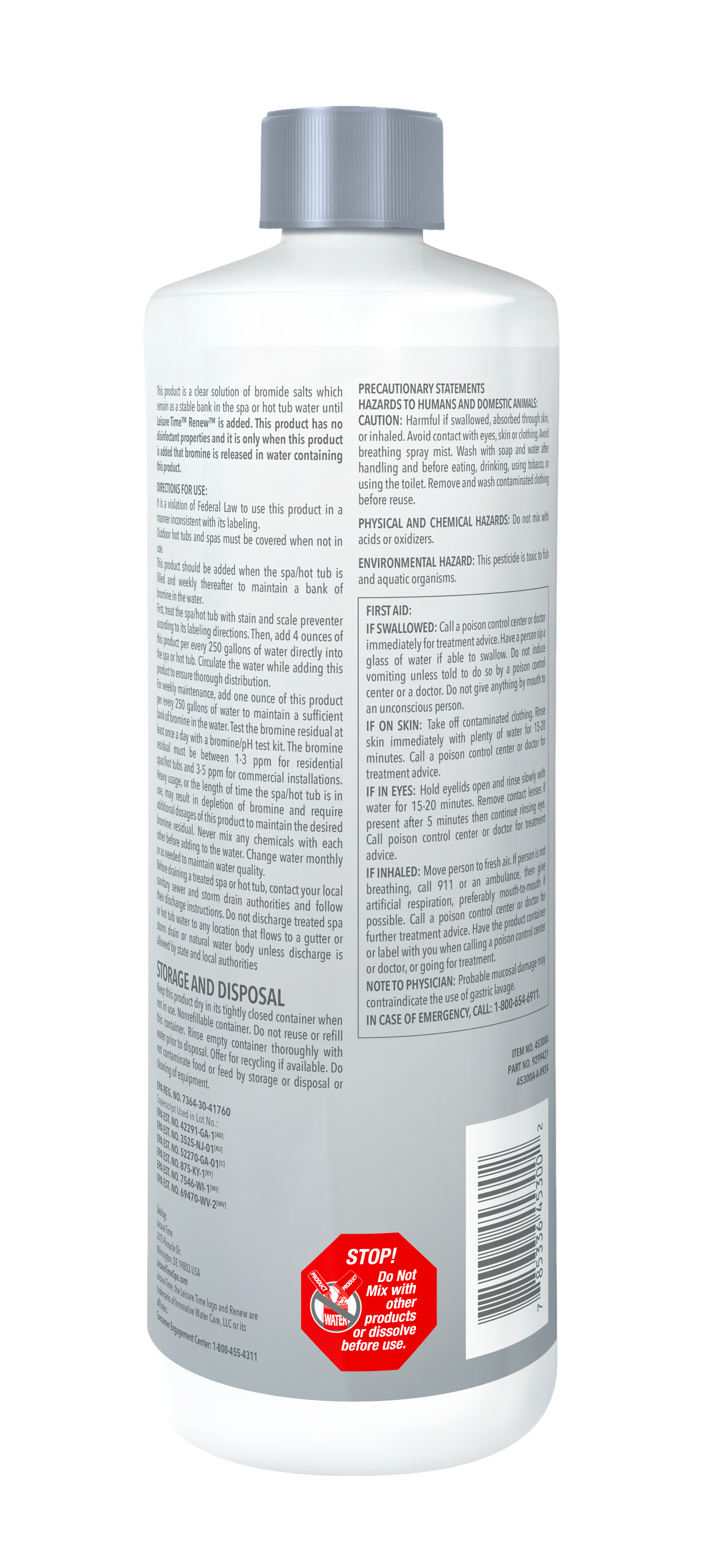 • For use with Renew™ Shock Oxidizer as part of a system of water in spas